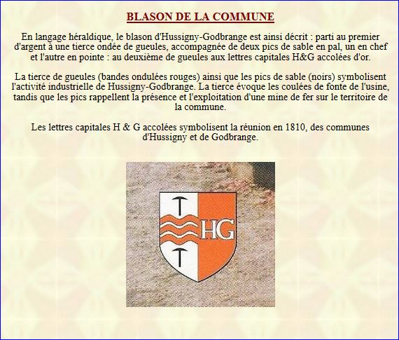 (1980) Parti: au 1er d'argent à la tierce ondée de gueules accompagnée de deux pics de sable, l'un en chef et l'autre en pointe, au 2e de gueules aux lettres capitales H et G accolées d'or.
