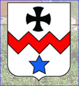 D'argent à la fasce vivrée de gueules, accompagnée en chef d'une croisette pattée de sable et en pointe d'une étoile d'azur.