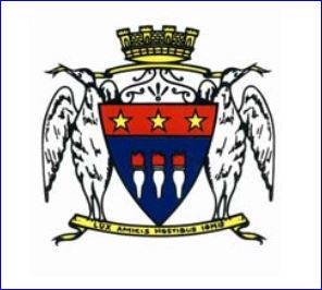 D'azur à trois torches d'argent enflammées de gueules, rangées en fasce; au chef cousu de gueules chargé de trois étoiles d'or.