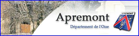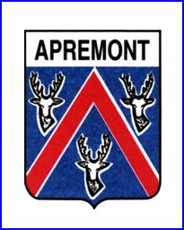 D'azur au chevron cousu de gueules accompagné de trois rencontres de chevreuil de sable ombré d'argent; au comble d'argent chargé de l'inscription «APREMONT» de sable.