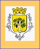 D'or au cep de vigne d'argent, feuillé de sinople, fruité d'azur.