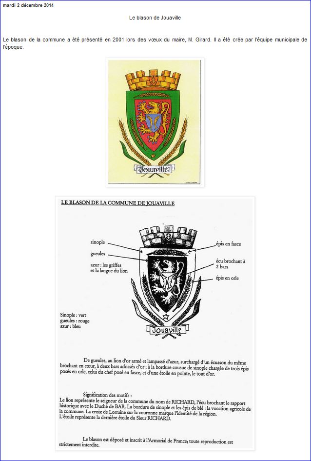 Blason sur le site Joauaville: Histoire et Réalité, 2022.