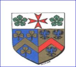Parti: au 1er d'azur au chevron d'or accompagné de trois trèfles du même, au 2e d'or au chevron de gueules accompagné de trois aigles d'azur becquées et membrées de gueules; le tout sommé d'un chef d'argent chargé d'une croix de Malte de gueules accostée de deux quintefeuilles de sinople.