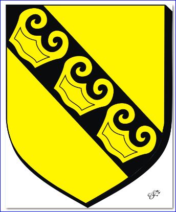 D'or à la bande de sable chargé de trois fusils de Bourgogne [briquets] d'or.