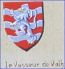 De gueules à la tierce ondée d'argent; sur le tout, de gueules au lion d'argent.