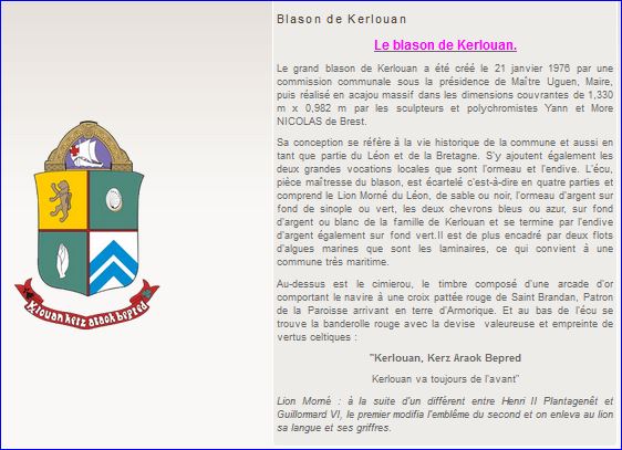Devise: « Kerlouan Kerz Araok Bepred » (Kerlouan toujours en avant).