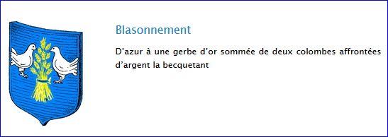 D'azur à la gerbe d'or sommée de deux colombes affrontées d'argent la becquetant.