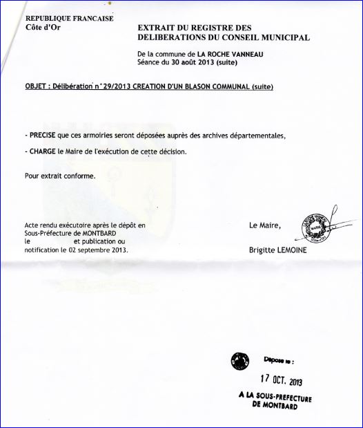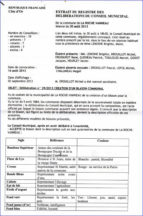 Extrait du Registre des Délibérations, 30 août 2013 (1/2).