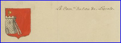 De gueules à la tour carrée d'argent, maçonnée de sable mouvant du flanc dextre, sur laquelle est arboré un étendard d'or, et à l'échelle d'argent posée contre la tour à senestre.