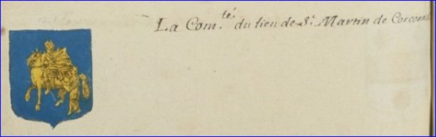 D'azur à saint Martin à cheval partageant son manteau avec un pauvre, le tout d'or.