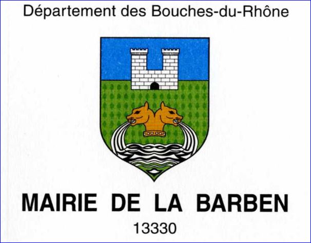 De sinople à la fontaine formée de deux têtes de lion accolées et adossées d'or et colletées ensemble de gueules, de la bouche desquelles jaillissent deux jets d'eau d'argent tombant sur une champagne ondée de même, ladite fontaine surmontée d'un château flanqué de deux tours d'argent, ouvert et maçonné de sable, brochant sur un chef cousu d'azur.