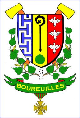 (2014) Tiercé en pal: au 1er d'argent à la double vergette potencée contrepotencée d'azur, mouvant des flancs, au 2e d'or à la crosse de sable soutenue d'un caillou de sinople, au 3e de gueules à trois alérions d'argent rangés en pal.