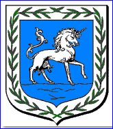 D'azur à la licorne contournée d'argent sur une terrasse du champ; à la bordure d'argent chargée de deux branches de laurier de sinople réunies en chef et passées en sautoir en pointe.