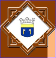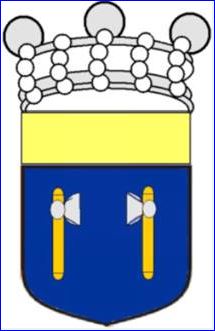 D'azur à deux haches affrontées d'argent, emmanchées d'or; au chef d'or.