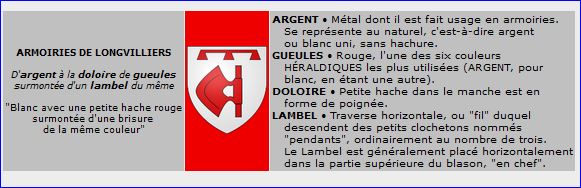 D'argent à la doloire de gueules surmontée d'un lambel du même.