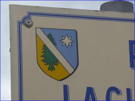 Tranché: au 1er d'azur à l'étoile de huit rais d'argent, au 2e d'or plain; au sapin arraché de sinople brochant à dextre; à la cotice d'argent brochant sur le tout..