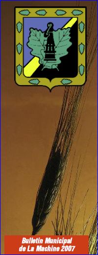 Taillé d'azur et sable; à la barre d'or brochant sur la partition; à deux feuilles de chêne de sinople passées en sautoir brochant sur le tout et et à la lampe de mineur de sable sur-brochant sur ces dernières; le tout enfermé dans une bordure de tenné chargée de douze feuilles de chêne de sinople.
