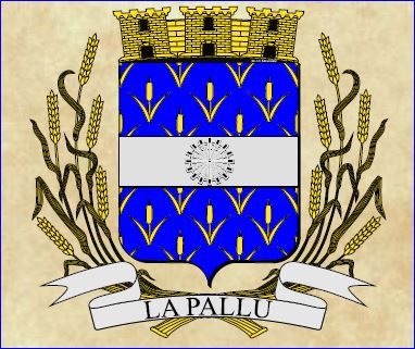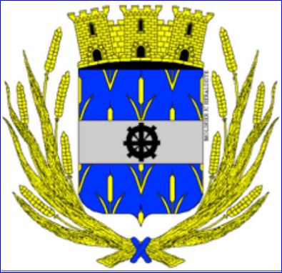 (1999) D'azur semé de joncs feuillés d'or, à la fasce d'argent chargée d'une roue de moulin de sable.