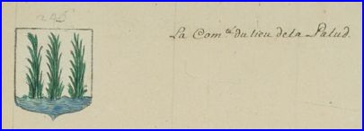 D'argent à trois joncs de sinople rangés et mouvant d'une rivière d'azur.