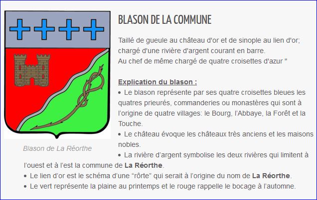 (1987) Taillé ondé: au 1er de gueules au château de deux tours d'or, ouvert et ajouré du champ, maçonné de sable, au 2e de sinople à la ronce d'or passée redorte et posée en barre; au filet ondé en barre d'argent brochant sur la partition; le tout sommé d'un chef d'argent chargé de quatre croisettes d'azur.