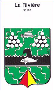(2002) Coupé: au 1er de sinople à six filets ondés en barre d'argent, à deux grappes de raisins, celle de dextre posée en bande et celle de senestre posée en barre, accompagnées en chef d'une brouette, le tout d'argent et brochant, au 2e de sinople à cinq filets ondés en bande d'argent et à la pointe partie de gueules et d'or brochante; à la fasce de sable bordée d'argent et chargée d'un poisson du même, le trait supérieur engrelé et sommé en coeur d'une vague déferlant vers la dextre, brochant sur la partition.