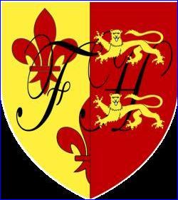 Parti: au 1er mi-parti d'or à trois fleurs de lis de gueules, au 2e de gueules; aux lettres capitales anglaises F et H de sable entrelacées brochant sur le tout; à deux léopards d'or l'un au-dessus de l'autre sur-brochant sur le H et sur le 2e du parti.
