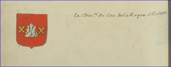 De gueules au rocher isolé d'argent, accosté de deux flanchis d'or.