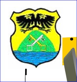 D'or au mont de sinople mouvant d'ondes d'azur en pointe, chargé de deux clefs d'or et d'argent passées en sautoir, et surmonté d'une aigle bicéphale de sable.