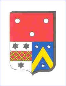 Coupé: au 1er de gueules à trois besants d'argent, au 2e parti au I d'argent à la fasce de gueules frettée d'or et accompagnée de trois étoiles de six rais de sable, au II d'azur au chevron d'or accompagné de trois étoiles d'argent.