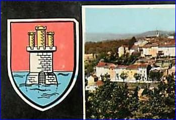 (1767) De gueules à la tour d'argent ajourée et maçonnée de sable, sommée de trois tourelles d'or maçonnées de sable, celle du milieu plus haute que les autres, le tout posé sur une mer d'azur.