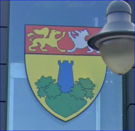 Blason sur la façade de la mairie, Google Street, 2020.