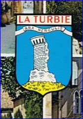 Devise: « tropæa augusti ad summas alpes » (le trophée d'Auguste au sommet des Alpes).