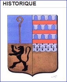 cense [ferme] propriété des comtes de Vermandois; l'un d'eux Herbert IV en fait don en 1059 aux chanoines de Chauny qui en font un hameau dépendant de... Vouel. Plus important était le village de Fargniers qui appartenait à l'abbaye de St-Nicolas au Bois (crosse d'abbé du 1er quartier) qui le cède en fief à Enguerrand II de Coucy en 1133.(armes du 2e quartier).