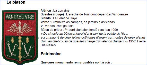 (1952) De sinople au bâton prieural d'or mouvant de la pointe, accosté de deux lettres gothiques V d'argent surmontées chacune d'un gland d'or, le pédoncule vers le chef; au chef cousu de gueules chargé d'un alérion d'argent.