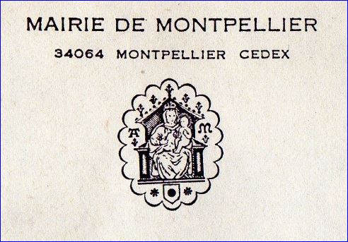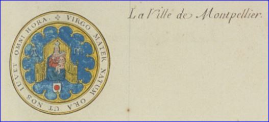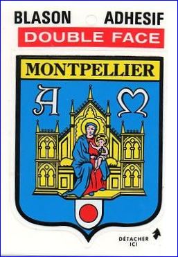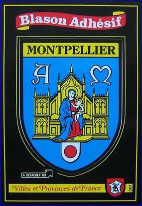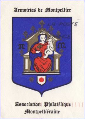 D'azur au trône gothique d'or, sur lequel est assise Notre Dame de carnation vêtue d'une robe de gueules et d'un manteau du champ, tenant l'Enfant Jésus de carnation, vêtu d'argent, le tout surmonté des lettres onciales A et M d'argent, rangées en chef, et soutenu d'un écusson du même chargé d'un tourteau de gueules.