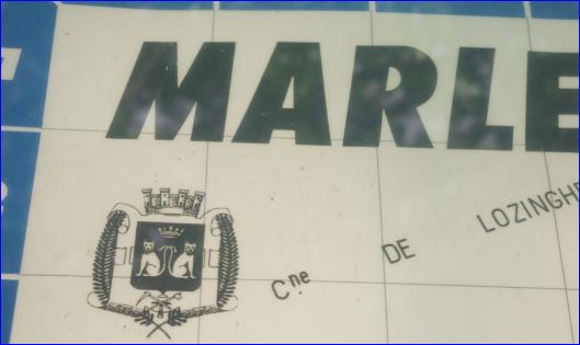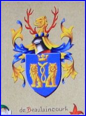 D'azur à deux léopards assis d'or, adossés et les queues passées en sautoir, surmontés d'une couronne du même.