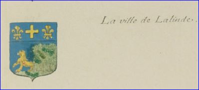 De gueules au lion léopardé d'or sortant d'une forêt terrassée de sinople; au chef cousu d'azur chargé d'une croisette d'or accostée de deux fleurs de lis du même.
