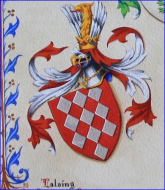 De gueules à dix losanges, accolés et aboutés d'argent, 3, 3, 3 et 1.