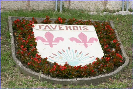 D'or à la gerbe de joncs de sinople mouvant de la pointe et surmontée de deux fleurs de lis de gueules.