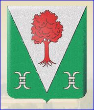 (1990) D'argent à l'arbre arraché de gueules; chaussé de sinople chargé de deux anilles d'argent