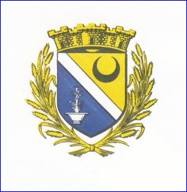 (1984) Tranché: au 1er d'or au croissant de sable, au 2e d'azur à la fontaine jaillissante d'argent; à la cotice d'argent brochant sur la partition.