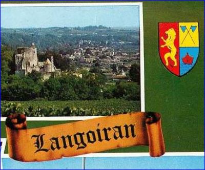 Parti: au 1er de gueules au lion d'or, au 2e coupé au I d'or à deux talloirs [outils de tonnelier] de sable passés en sautoir et au II d'azur à la champagne cousue de sable sommée d'une proue de gabarre de gueules, à l'étrave d'or et les bords componés d'or et de gueules.