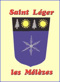 D'azur au cristal de neige d'argent; au chef cousu de sable chargé de dextre à senestre d'un mélèze d'argent, d'un soleil non figuré d'or, d'un second mélèze d'argent et d'un second soleil non figuré d'or.