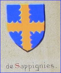 (Inventaire des sceaux d'Artois et de Picardie, 1877) décrit d'après son sceau les armes de Baudouin de Sapignies, chevalier du comte d'Artois en 1300: une croix denchée surmontée d'un lambel. Hugues de Sapignies, en 1299, en 1309 et en 1323, avait aussi sur son sceau, d'après Demay, une croix denchée et un lambel.