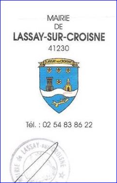 (1992) D'azur à la fasce ondée abaissée d'argent, à la tour d'or ouverte et ajourée de sable à dextre et la chapelle d'or à senestre mouvant toutes deux de la fasce, accompagnées en chef de trois quintefeuilles d'argent et au point d'honneur d'une 4e du même, et en pointe d'une demi-ramure d'or.