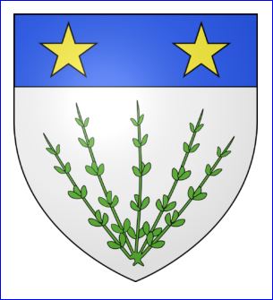 (1985) D'argent au genêt de sinople, au chef d'azur chargé de deux étoiles d'or.