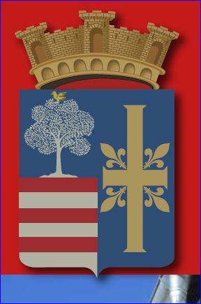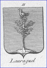 Parti: au 1er coupé au I d'azur à l'arbre d'argent sur lequel est perché un loriot d'or, au II fascé de gueules et d'argent, au 2e d'azur à la croix pattée, alésée et anglée de quatre fleurs de lis, le tout d'or.