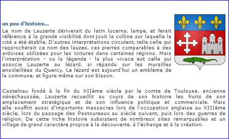 Parti: au 1er de gueules à la croix tréflée d'argent; au 2e de gueules au château à trois tours couvertes en dôme d'argent, croisées et maçonnées de sable, jointes ensemble par un entre-mur d'argent, le tout sur une terrasse d'argent chargée d'un lézard de sinople; le tout sommé d'un chef d'azur chargé de trois fleurs de lis d'or.