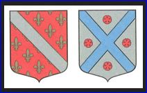 1) De gueules semé de fleurs de lis d'or, à la bande d'argent brochant sur le tout.