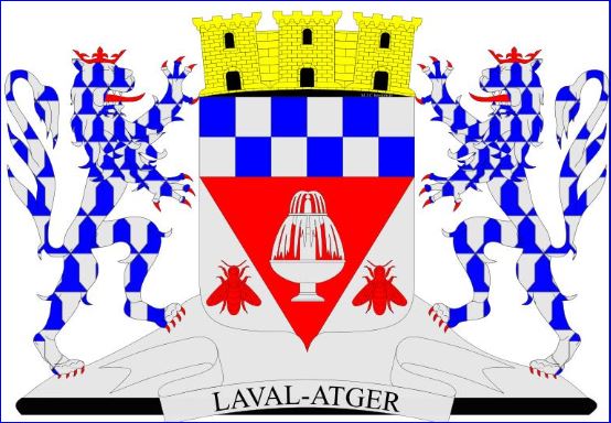 (2001) De gueules à la fontaine d'argent; chaussé d'argent chargé de deux abeilles de gueules; au chef échiqueté d'azur et d'argent de deux tires.